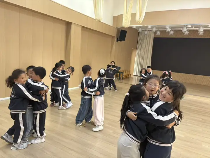 游戏现场满是欢声笑语,趣味满满。随着老师“桃花开几朵”的口令响起,孩子们立刻竖起小耳朵认真倾听,迅速做出反应。喊到三朵,三个小伙伴便立刻牵手相拥;喊到五朵,五位小朋友快速抱团聚拢。大家专注投入、默契配合,在奔跑与相拥中,认真遵守游戏规则,主动寻找小伙伴携手组队。即便有小朋友暂时没能顺利抱团,也能笑着面对、积极参与,全程洋溢着轻松愉悦的氛围。这场小游戏,不仅让孩子们尽情释放活力,更在互动中学会了倾听、懂得了合作、感受了集体游戏的美好,每一张小脸都绽放着纯真灿烂的笑容。